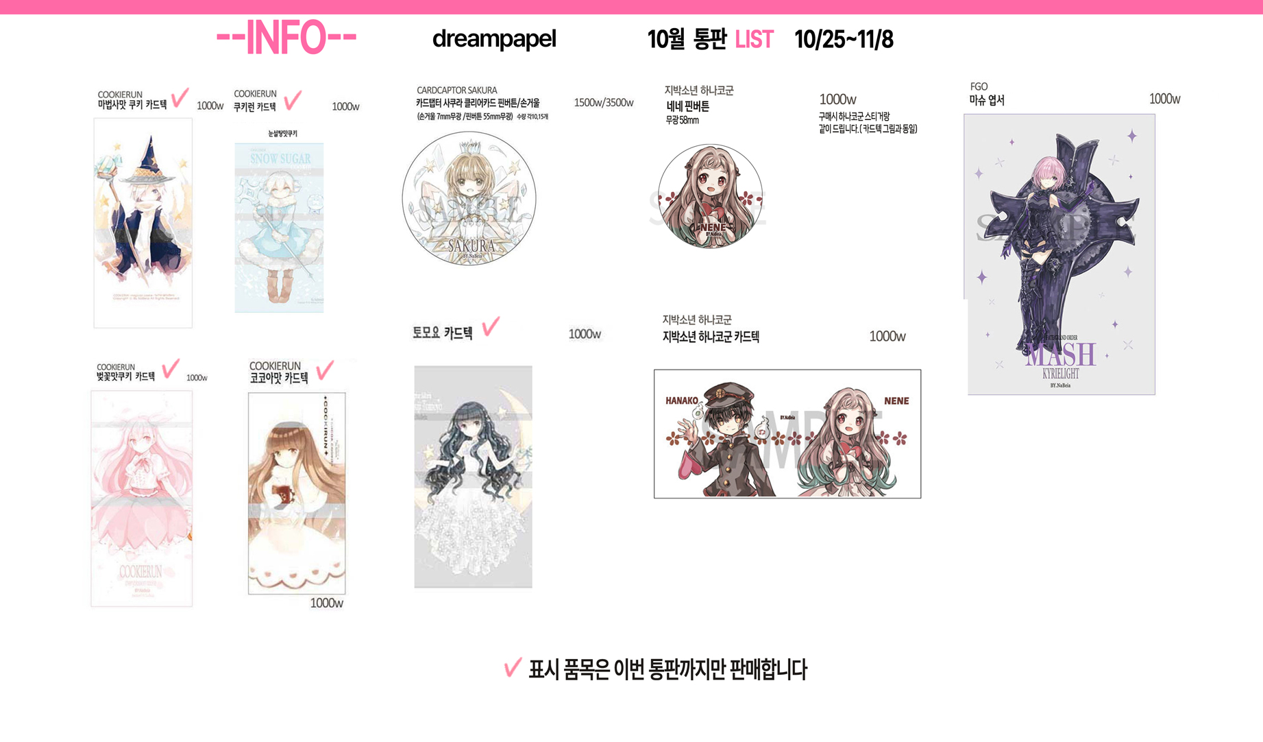 ◆ 일부 당일 행사장에 없을수도 있거나 변경 될 수 있습니다!